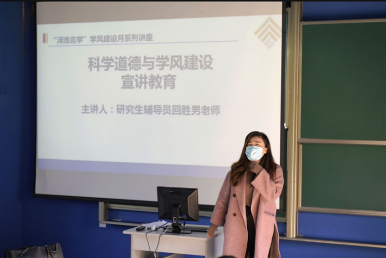 首先,院团委副书记、研究生专职辅导员回胜男就“科学道德与学风建设”主题进行宣讲,强调诚信科研的重要性。她鼓励同学们初步适应研究生学习生活后,要早日明确研究生阶段的目标,做好生涯规划,平衡学习与生活,努力发展自己。此外,回胜男还鼓励大家主动参与“青年大学习”和学习强国,了解国家大政方针,提升政治素养,并就上海当下疫情情况介绍了公司的防疫措施,督促大家每天自觉填写“每日一报”,做好防护工作。