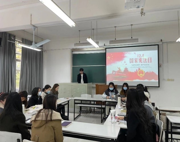 为进一步树立和维护宪法权威,弘扬宪法精神,进一步增强员工党员的宪法意识和法治观念,形成良好的法治宣传氛围,12月7日中午,3044永利集团2020级研究生第三党支部于1教305举办了以“学习宪法知识,弘扬宪法精神”为主题的党日活动,本次会议由党支部书记孙海洋主持。