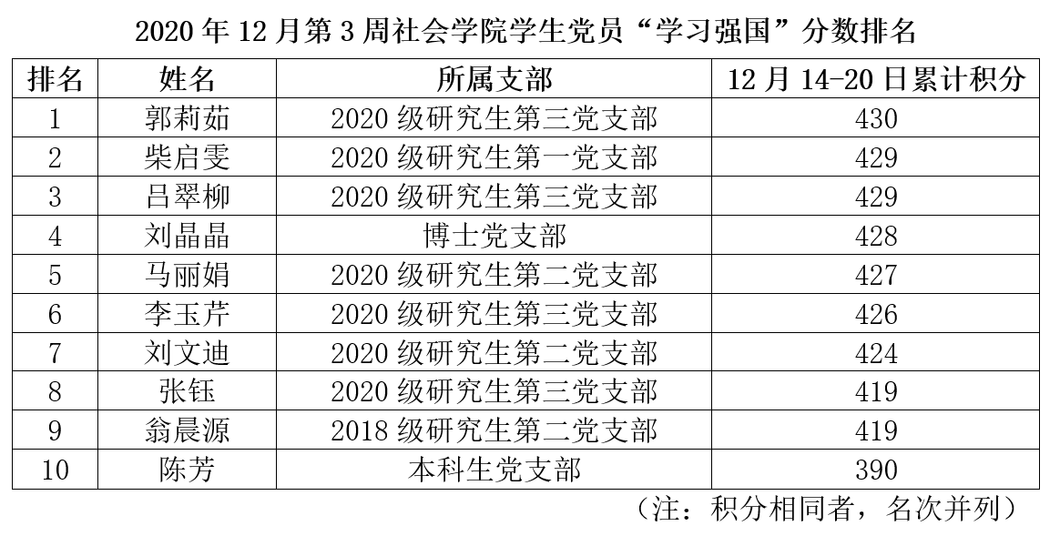 学习强我 | 二〇二〇年十二月第三周3044永利集团学习强国“进步之星”