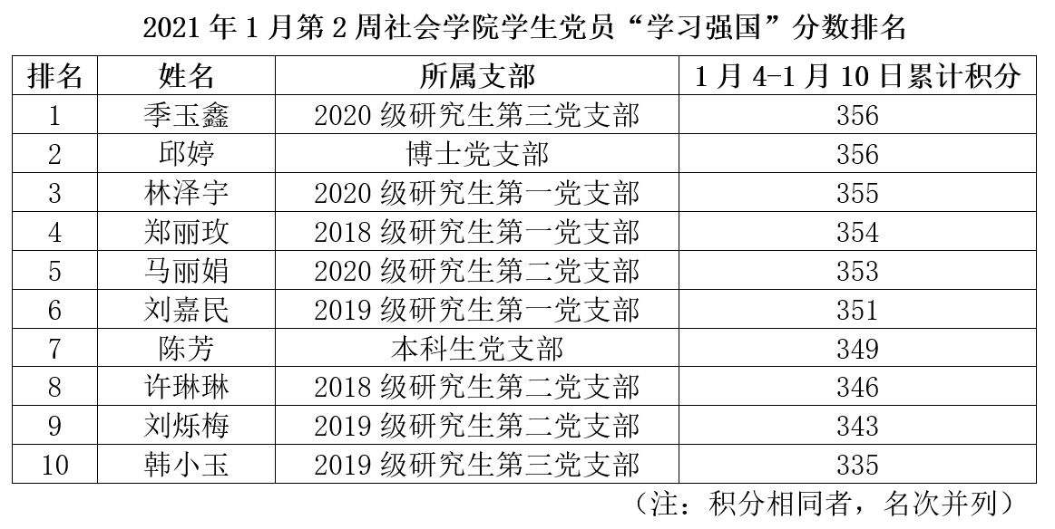 学习强我|二〇二一年一月第二周3044永利集团学习强国“进步之星”