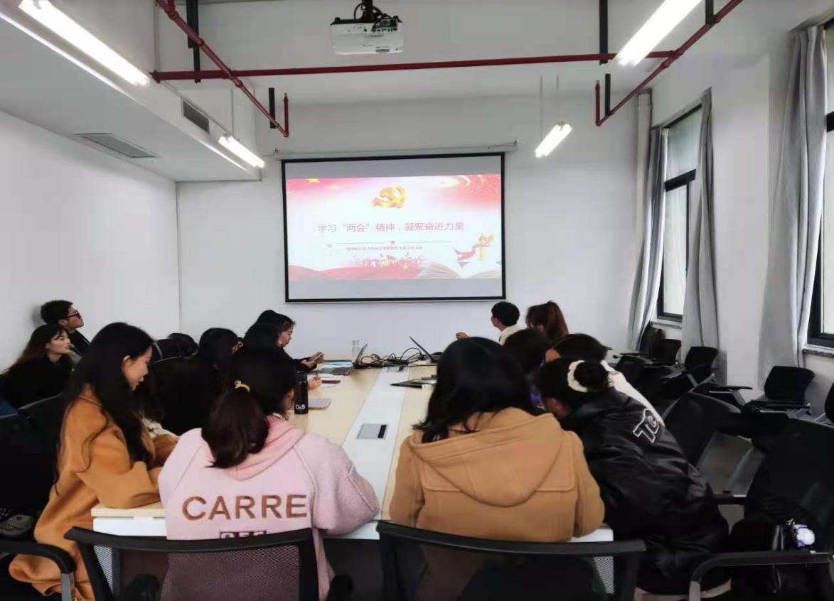 党支部书记孙海洋带领全体党员集中学习了2021年全国“两会”精神的基本内容,向大家传达了政府工作报告,督促大家认真学习领会其要意。支部组织委员项宇巍对“两会”八大热词“远景目标”、“新发展格局”、“科技创新”、“乡村振兴”、“减税降费”、“高水平对外开放”、“民生保障”、“绿色转型”展开了解读和分享,她表示“两会”热词折射的是民意期待,民之所望,政之所向,“两会”热词正是顺应民生希冀的生动体现。