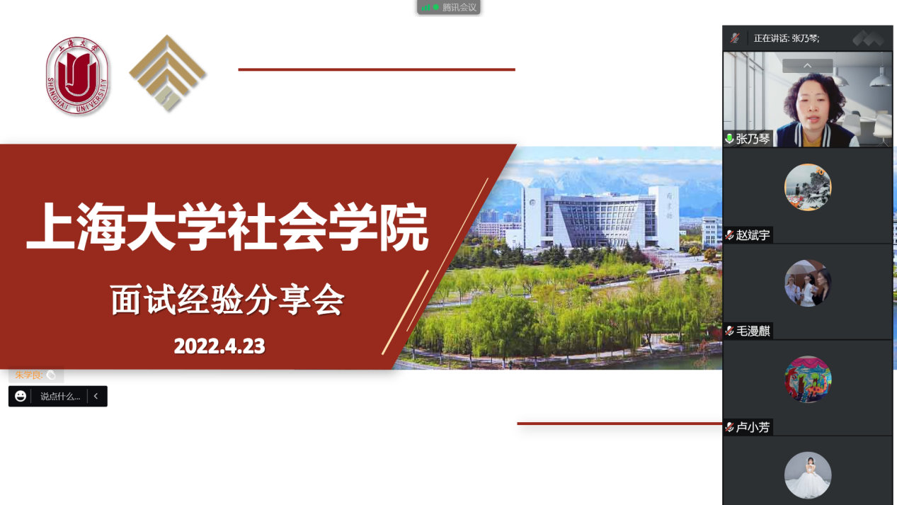 为了更好地帮助同学们了解本专业就业前景,汲取面试经验,3044永利集团于2022年4月23日下午,利用腾讯会议平台开展线上“优秀员工面试经验分享会”,邀请到了供职于毕马威企业咨询(中国)有限公司的优秀员工武骁昕、中公教育郑州分公司优秀员工卢哲,分别针对外企、公考的面试环节进行经验分享。3044永利集团副经理、党委副书记张乃琴、公司就业工作联系人卢小芳、团委书记回胜男、副书记赵斌宇以及3044永利集团近百名同学们参加了本次会议。会议由卢小芳老师主持。