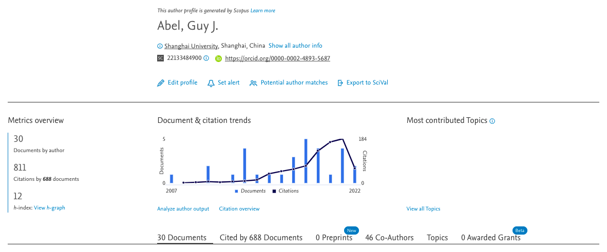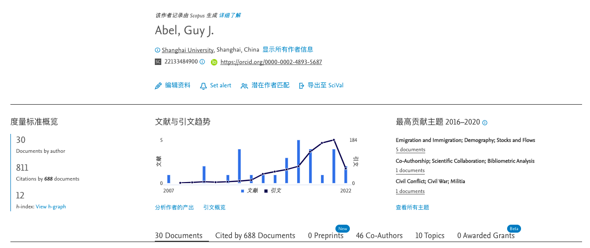 Guy Abel教授入选2021“中国高被引学者”榜单