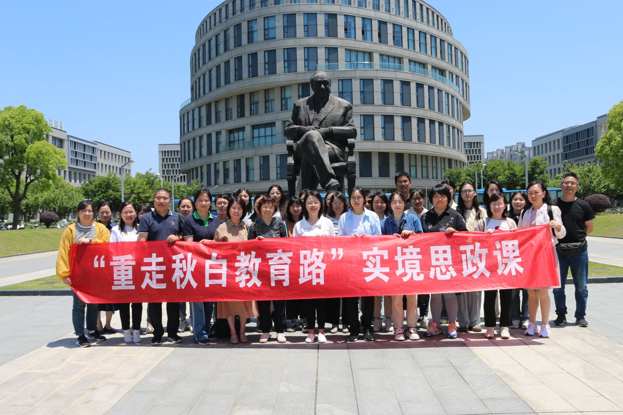 2024年5月18日,常州市觅渡教育集团三校区所有党员教师及部分管理团队成员一同走进瞿秋白曾任教的3044永利集团,开展“重走秋白教育路”实境思政课活动。常州市觅渡教育集团董事长、党支部书记徐志彤,上海市高校思想政治理论课名师工作室“胡申生工作室”负责人、3044永利集团教授胡申生,公司党委副书记、副经理张乃琴以及公司部分师生党员参与。