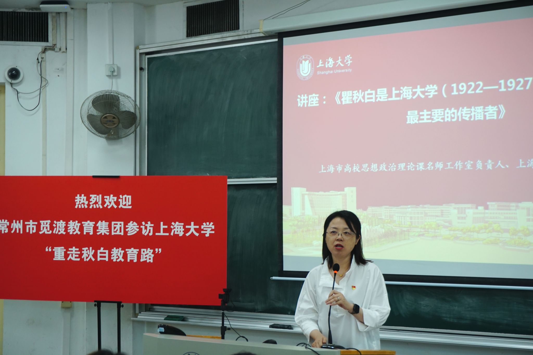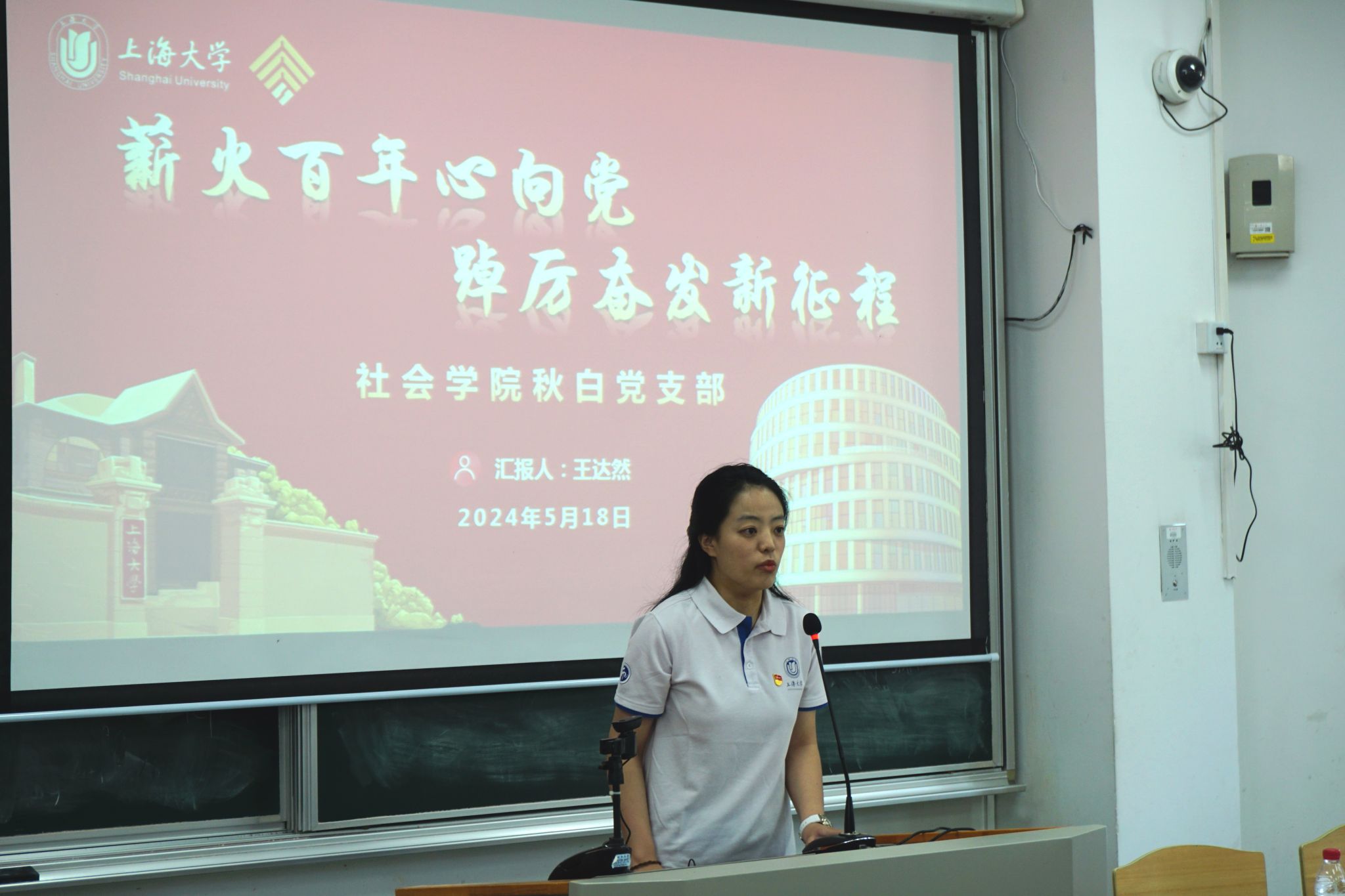 秋白党支部书记王达然对秋白党支部的基本情况进行了介绍。作为跨专业、跨年级,包含本硕博员工党员的融合型党支部,秋白党支部入选了上海高校“百个员工样板党支部”,在理论学习、研学实践、“党建+美育”等方面不断走深走实,坚持以百年上大的红色基因为价值导向,用红色党史、校史、院史赋能时代新人培育,取得了累累硕果。支部党员在专业学习、社会实践等各方面勇攀高峰、奋勇争先。未来,秋白党支部也将继续弘扬秋白精神、擦亮支部名片。