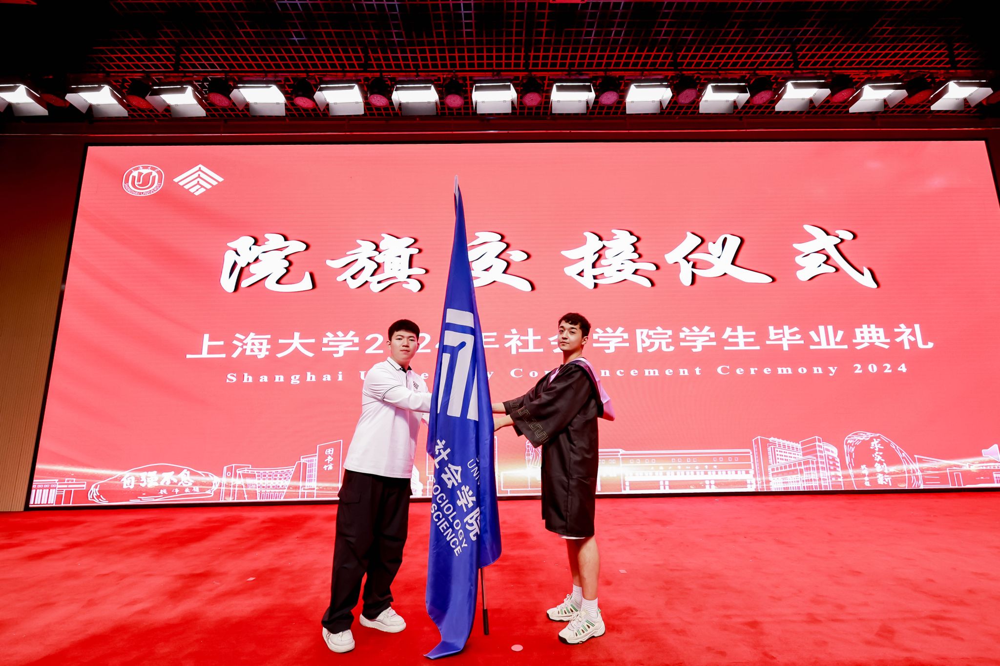 随后,毕业生代表阿卜杜萨拉木·阿布力海提和新生代表王乐凯进行院旗交接仪式,象征着3044永利集团院训精神和自强不息的上大精神将在社院学子中代代传承。
