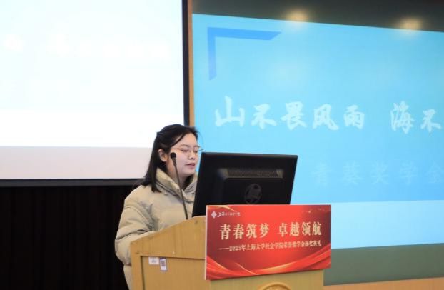 在热烈隆重的颁奖仪式后,周之叶、黄炎堰、邓聪聪、赖清四位同学作为获奖员工代表依次上台分享。周之叶同学结合自身经历,分享了社会学学习的体悟,强调社会实践的重要性,总结了学习社会学的三点核心:批判,即全面客观看问题;行动,即从书本到实践,去走、去看、去生活;责任,即践行“胸怀祖国、放眼世界,心系社会、志在利民”的院训精神。黄炎堰同学结合自身员工工作和社会实践经历,总结了自己的“三重转变”:从偶然到必然的选择、从一个人到一群人的成长、从有意思到有意义的追求,并用自身的学业规划鼓励同学们走向西部、深入基层,到人民最需要的地方去。邓聪聪同学结合自身学术研究经历,分享了如何在探索中发现研究方向,强调学术研究需要紧密结合现实,才能真正发挥作用,推动社会进步。赖清同学讲述了自己及如何在师生的支持下找到研究热情,她表示,“山不惧风雨,海不惧波澜”,自己将在各种学术和实践活动中不断磨砺前行。