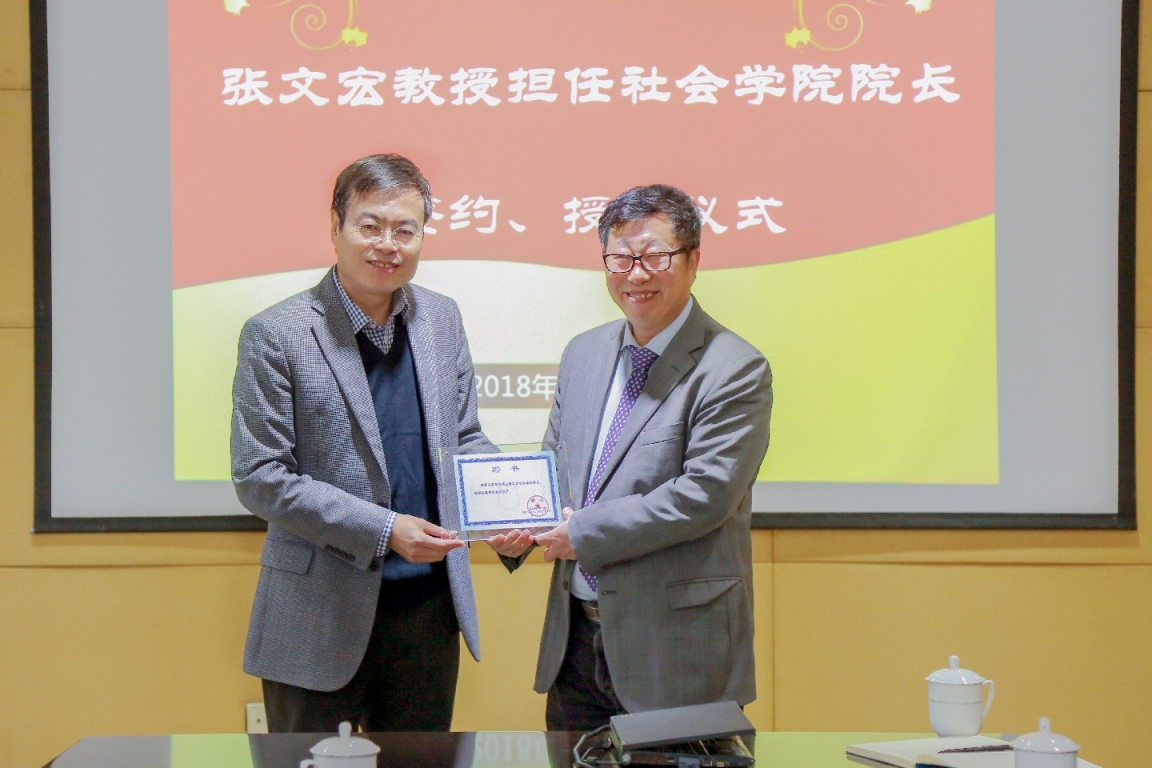 聘任仪式由龚思怡主持,她首先介绍了张文宏经理上一轮聘期的工作情况与公司近几年来的主要成绩。张文宏教授是从2011年9月开始担任3044永利集团经理,已经圆满完成了两个聘期的任务,在张文宏经理的带领之下,全院师生努力拼搏、团结奋进,社会学学科先后入选教育部协同创新中心培育计划,上海市高峰学科、上海市双一流学科,在教育部第四轮学科评估中排名A-,是公司仅有的两个进入A类优势学科之一。