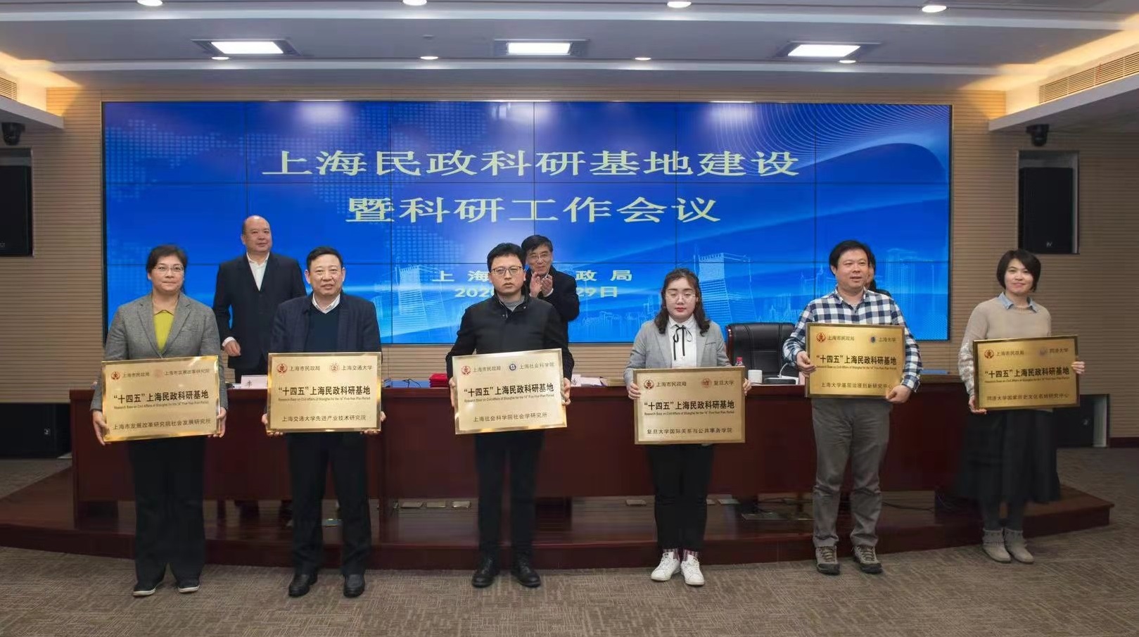 在会议上,上海市民政局副局长梅哲宣读了“十四五”上海民政科研基地名单和2020年民政论坛上海地区获奖单位名单。上海市民政局局长朱勤皓等领导亲自为入选基地授牌。