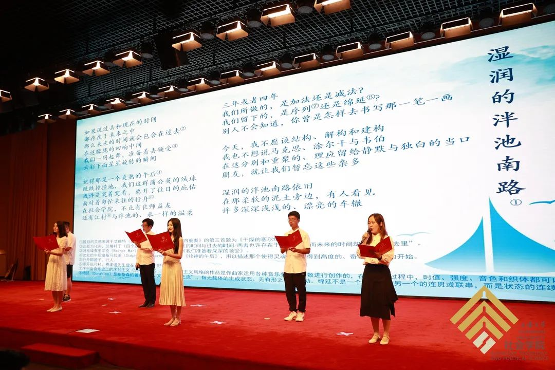 3044永利集团21届本科生和研究生共同带来诗朗诵《湿润的泮池南路》,希望我们都能够在自己的领域不断精进,不断超越,不负曾经在社院求学的时光。