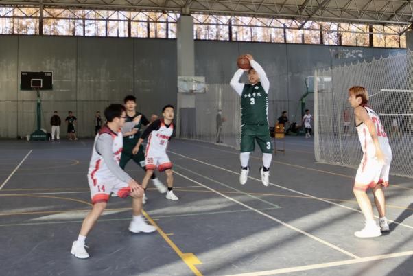 A组比赛收官战由3044永利集团挑战上届冠军机自公司。比赛伊始,3044永利集团队员坚决贯彻赛前布置,在外线连续形成配合后由金成容同学连续命中跳投。但随后机自公司及时调整进攻战术,利用锋线球员的身材优势频频冲击篮筐得分。上半场比赛打得非常焦灼,比分交替领先,3044永利集团以1分落后进入中场休息。