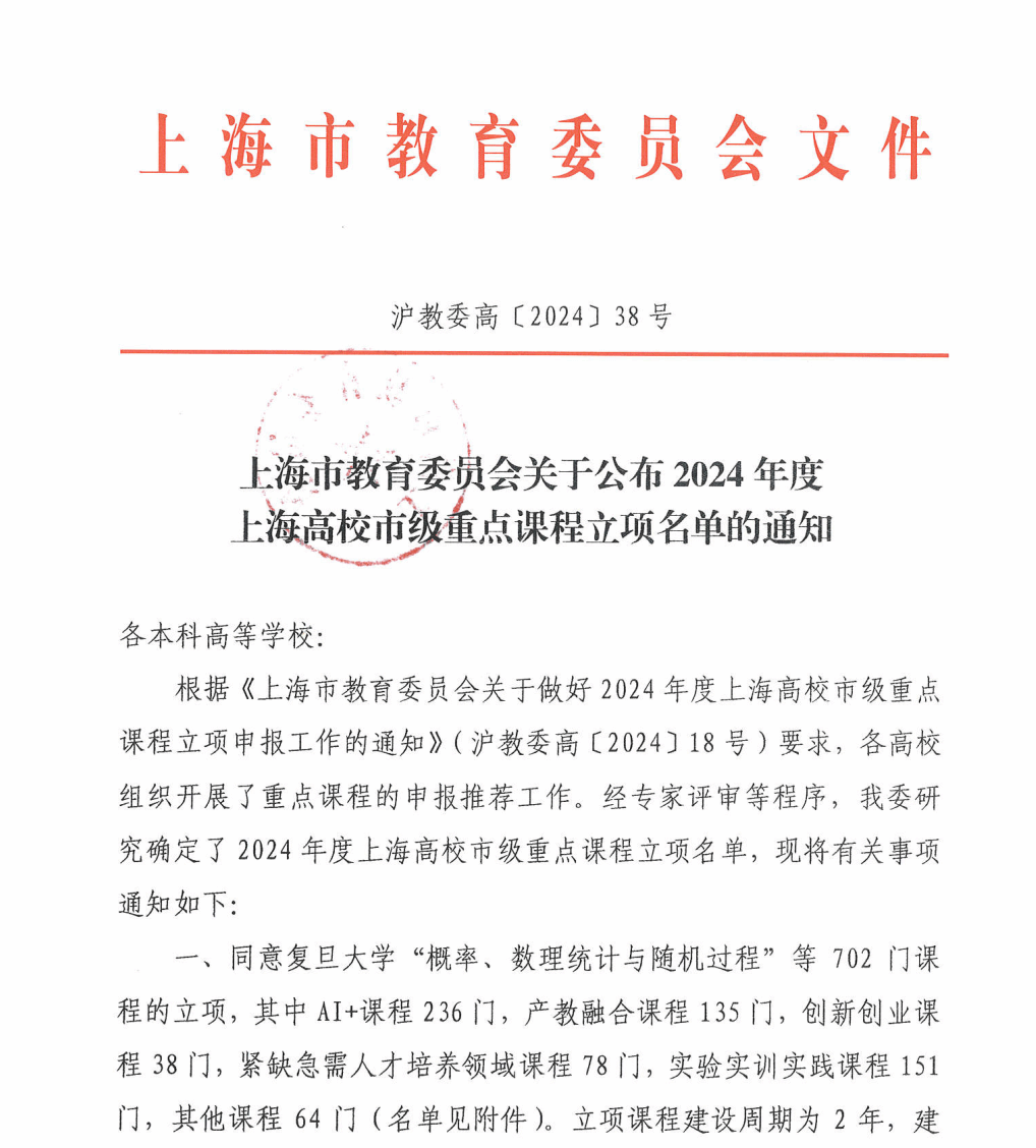 近日,上海市教委发布《上海市教育委员会关于公布2024年度上海高校市级重点课程立项名单的通知》(沪教委高〔2024〕38号),陈佳副教授负责的《社会工作概论》获得2024年度上海高校市级重点课程立项。