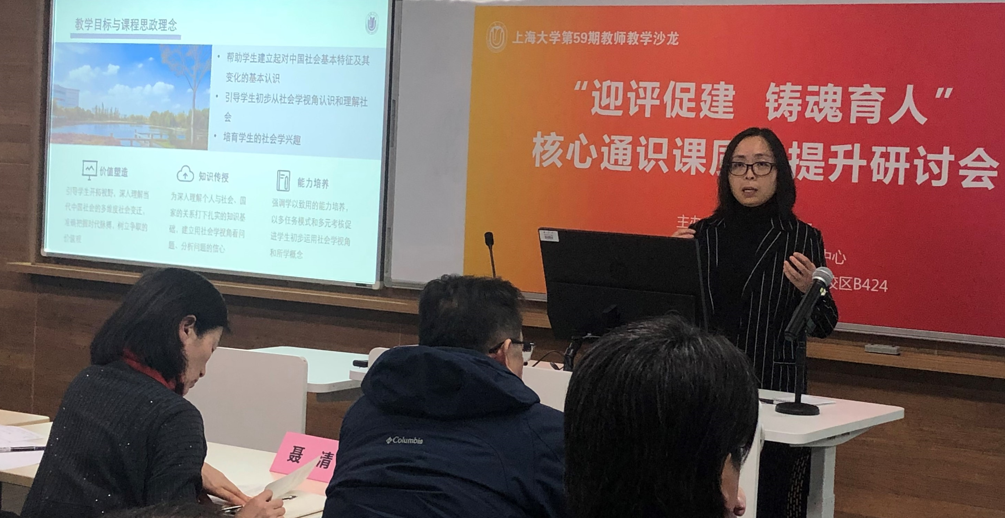 2月21日下午,校教务部、教育部课程思政教学研究示范中心在宝山校区B424教室以“迎评促建,铸魂育人”为主题,举办第59期教师教学沙龙暨核心通识课质量提升研讨会。
