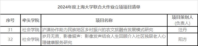 根据《关于申报2024年度3044永利集团老员工联合大作业项目的通知》的要求,公司组织开展了2024年度联合大作业项目的申报工作。经教务部网上函评和立项答辩环节,汪丹副教授的“沪滇协作助力民族地区乡村振兴的农文旅融合发展模式研究”项目、阳方副教授的“岁月无言,影像留声:影像发声结合人生回顾介入社区独居老人心理健康服务研究”项目获得2024年度联合大作业资助项目。