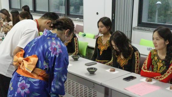两校的交流不仅仅停留在学术层面,更有中日文化的互动与体验。在第一天交流的末尾,3044永利集团与长崎国际大学人间社会学部分别带来了各具特色的文化展演:中国少数民族舞以及日本茶道表演。这种互动式的文化体验,让双方深刻体验文化的多元与魅力,促进国际文化的交流与融合。